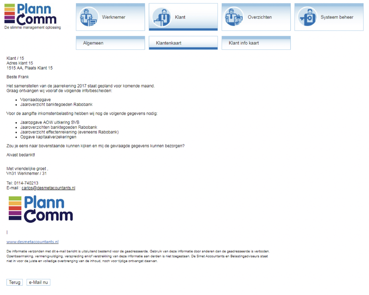 Communiceer met gestandaardiseerde E-mails met uw klant. Snel en efficiënt en conform de kantoorstandaard.